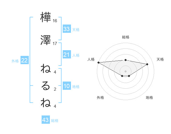 樺澤 ねるねさんを姓名の画数から五運を鑑定