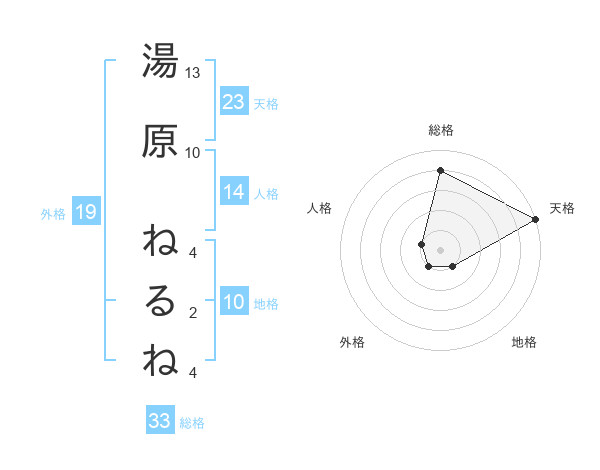 湯原 ねるねさんの天格は23画の5点!