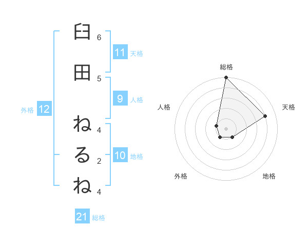 臼田 ねるねさんの外格は12画の1点!