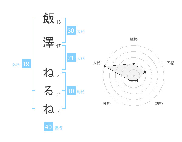 飯澤 ねるねさんを姓名の画数から五運を鑑定