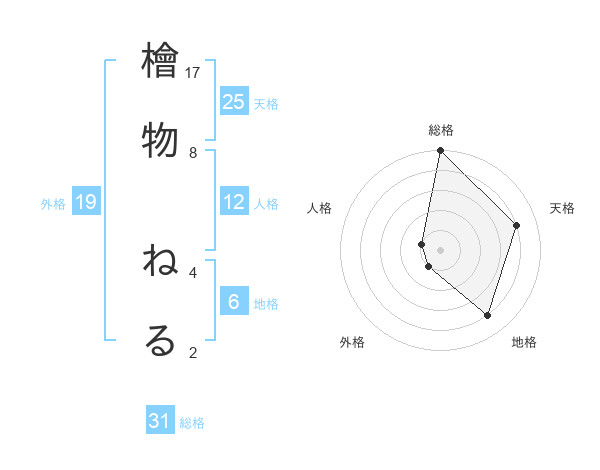 檜物 ねるさんを姓名の画数から五運を鑑定