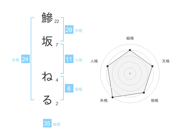 鰺坂 ねるさんの総格は35画の4点!