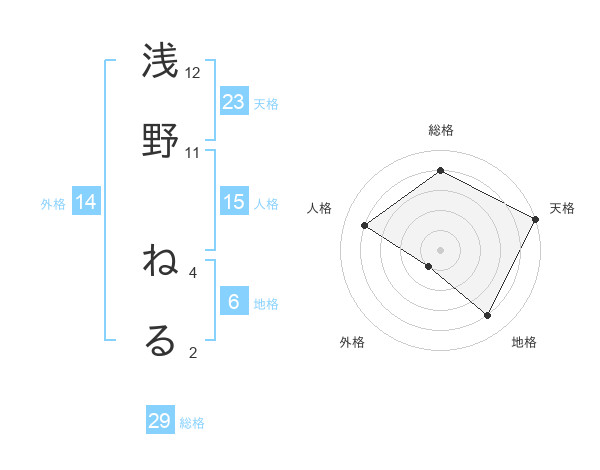 浅野 ねるさんを姓名の画数から五運を鑑定