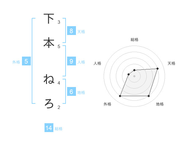 下本 ねろさんの総格は14画の1点!