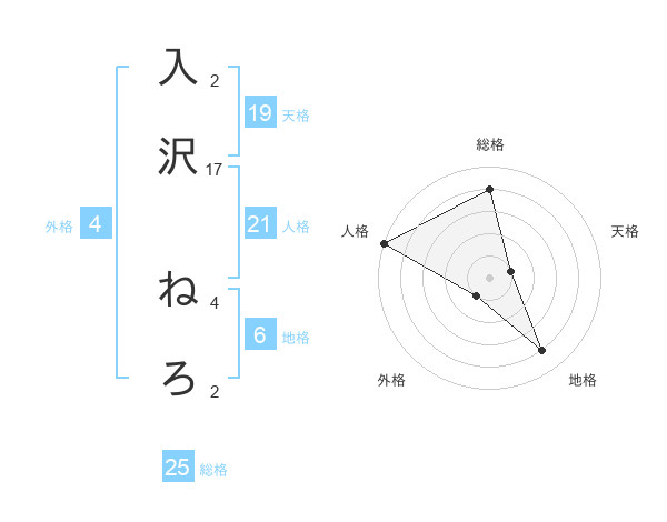 入沢 ねろさんの総格は25画の4点!