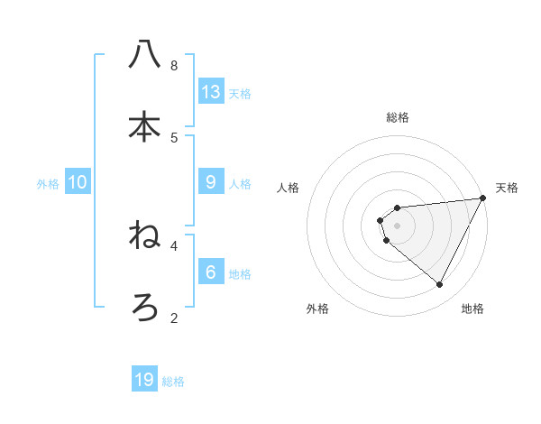 八本 ねろさんの天格は13画の5点!