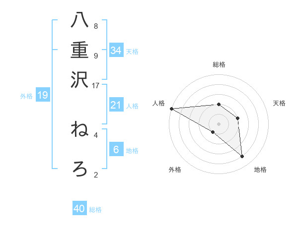八重沢 ねろさんを姓名の画数から五運を鑑定