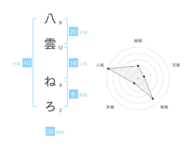八雲 ねろさんの総格は26画の2点!