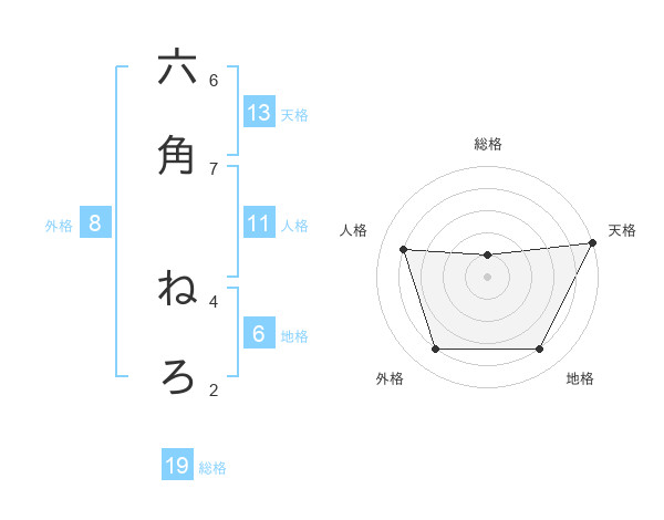 六角 ねろさんの天格は13画の5点!