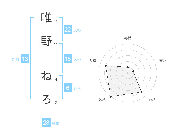 唯野 ねろさんの外格は13画の5点!