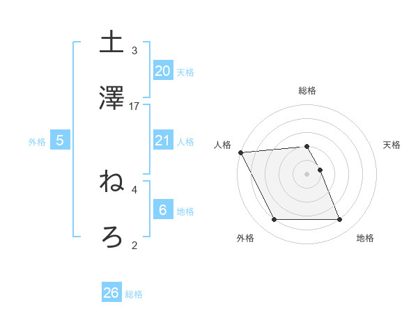 土澤 ねろさんの総格は26画の2点!
