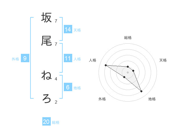 坂尾 ねろさんを姓名の画数から五運を鑑定