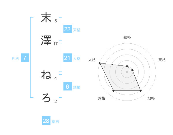 末澤 ねろさんを姓名の画数から五運を鑑定