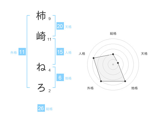 柿崎 ねろさんの総格は26画の2点!