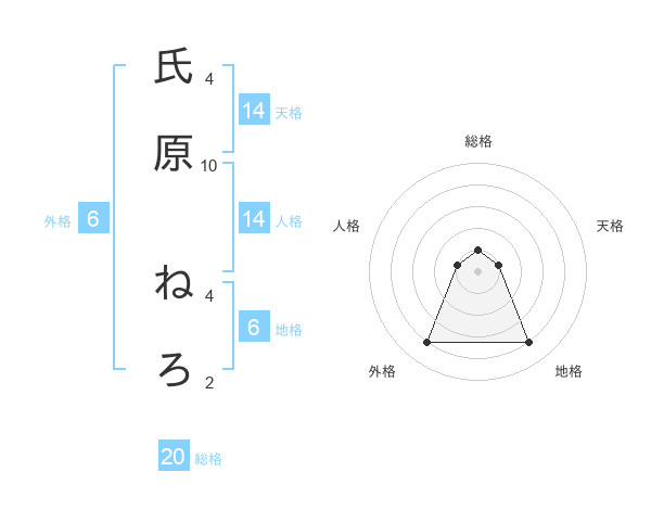 氏原 ねろさんを姓名の画数から五運を鑑定