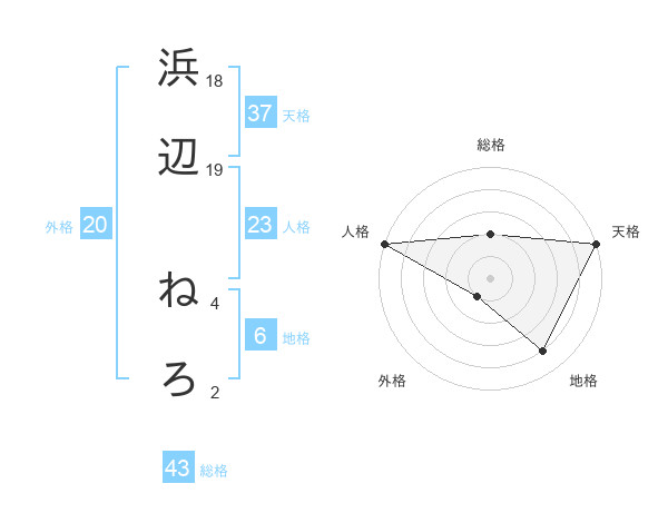 浜辺 ねろさんの天格は37画の5点!