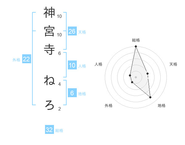 神宮寺 ねろさんを姓名の画数から五運を鑑定