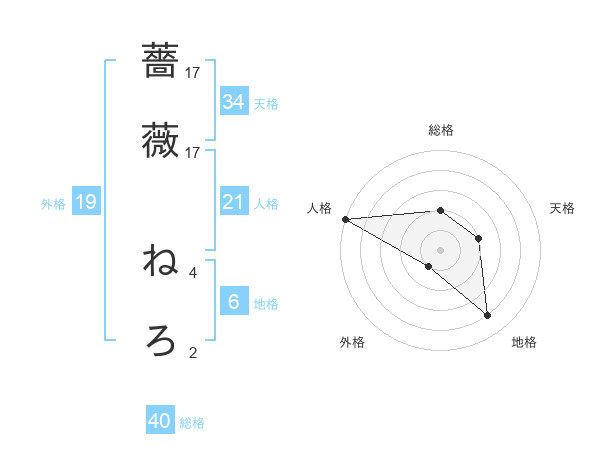 薔薇 ねろさんを姓名の画数から五運を鑑定