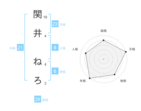 関井 ねろさんの天格は23画の5点!