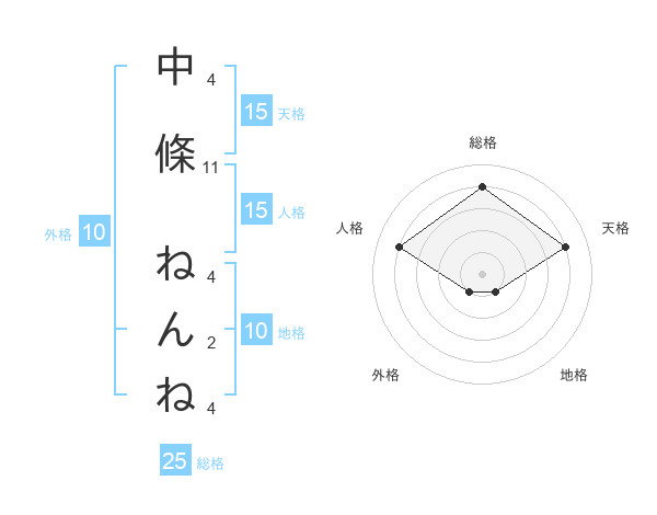 中條 ねんねさんの天格は15画の4点!
