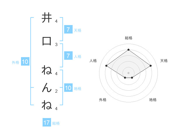 井口 ねんねさんを姓名の画数から五運を鑑定