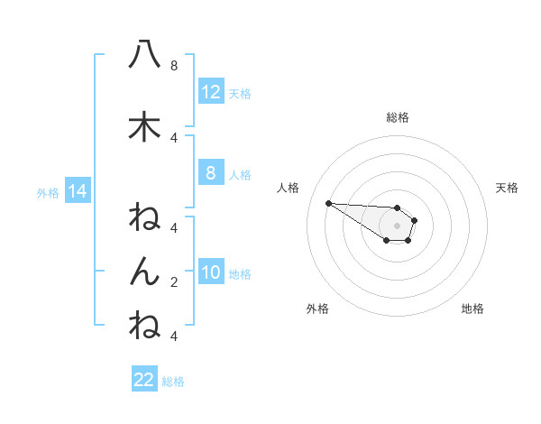 八木 ねんねさんを姓名の画数から五運を鑑定