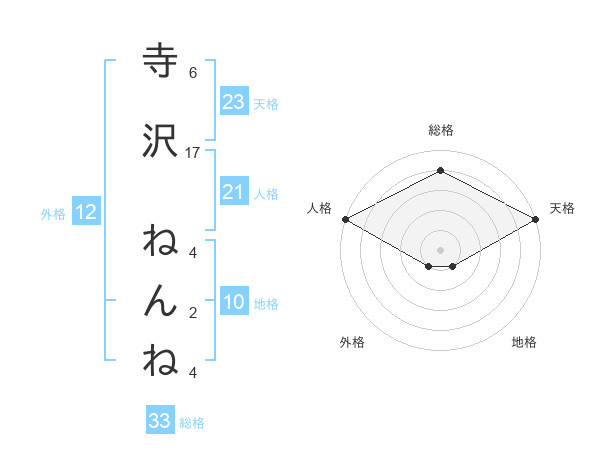 寺沢 ねんねさんを姓名の画数から五運を鑑定