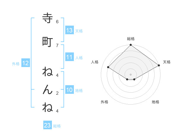 寺町 ねんねさんの総格は23画の5点!
