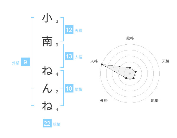 小南 ねんねさんの外格は9画の1点!
