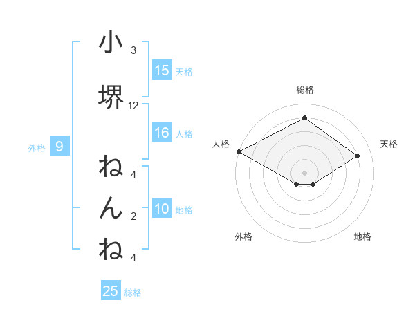 小堺 ねんねさんの総格は25画の4点!