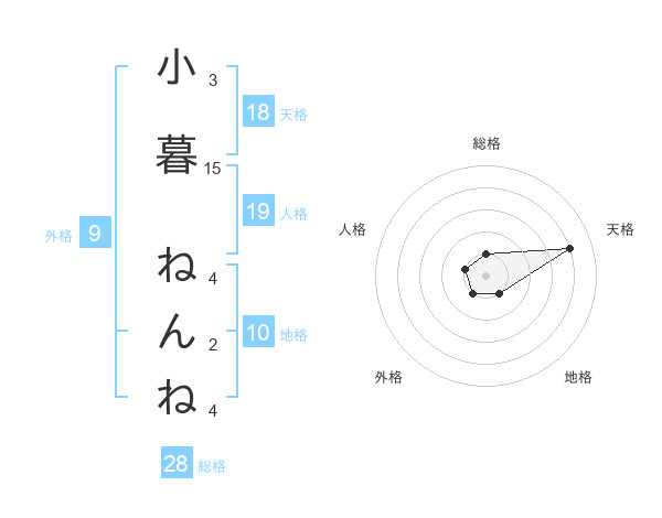 小暮 ねんねさんを姓名の画数から五運を鑑定