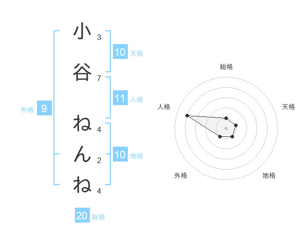 小谷 ねんねさんの総格は20画の1点!