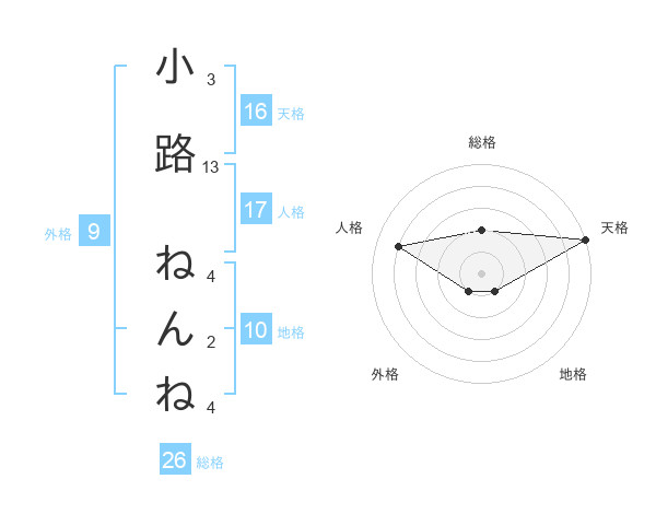小路 ねんねさんを姓名の画数から五運を鑑定
