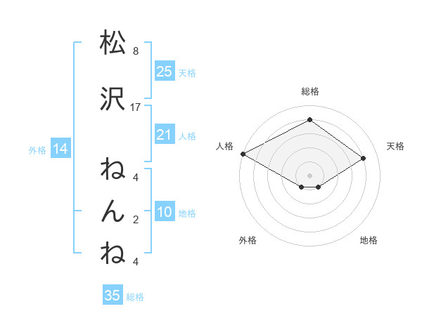 松沢 ねんねさんの天格は25画の4点!