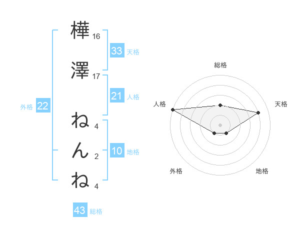 樺澤 ねんねさんの天格は33画の4点!