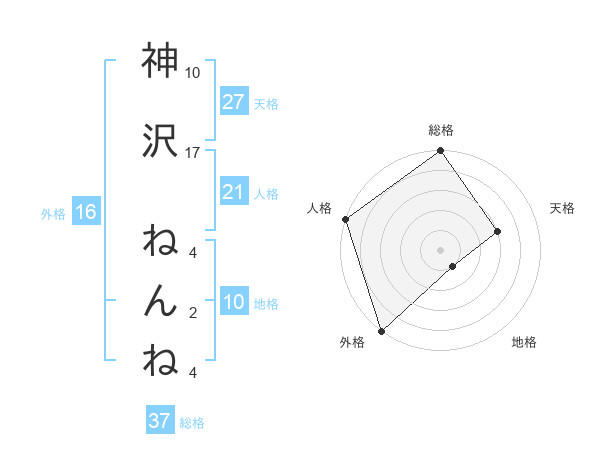 神沢 ねんねさんを姓名の画数から五運を鑑定