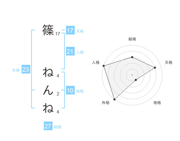 篠 ねんねさんの天格は17画の4点!