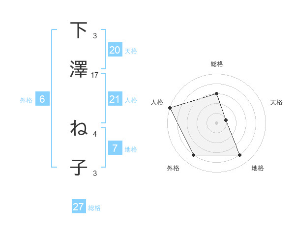下澤 ね子さんを姓名の画数から五運を鑑定