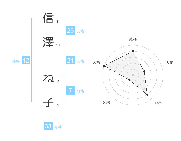 信澤 ね子さんの人格は21画の5点!