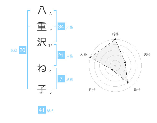 八重沢 ね子さんを姓名の画数から五運を鑑定