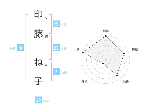 印藤 ね子さんの総格は32画の5点!