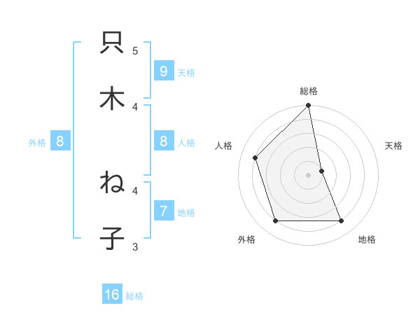 只木 ね子さんの総格は16画の5点!
