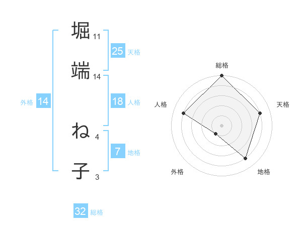 堀端 ね子さんを姓名の画数から五運を鑑定