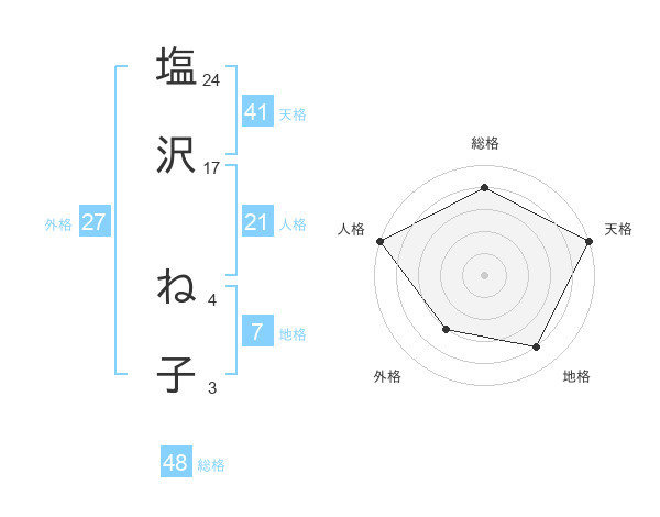 塩沢 ね子さんを姓名の画数から五運を鑑定