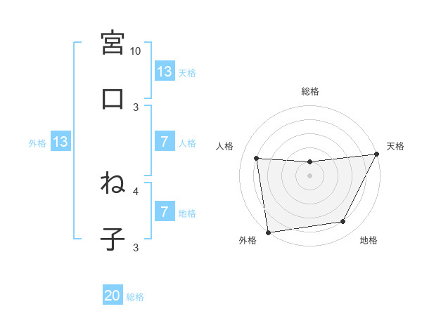 宮口 ね子さんを姓名の画数から五運を鑑定