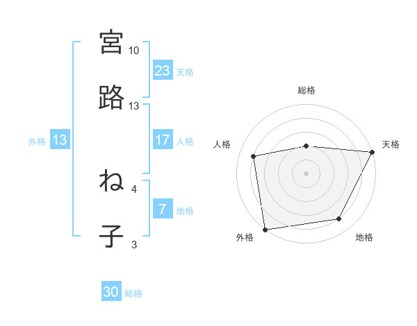 宮路 ね子さんを姓名の画数から五運を鑑定