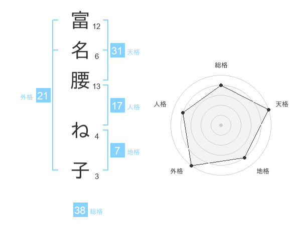 富名腰 ね子さんの天格は31画の5点!