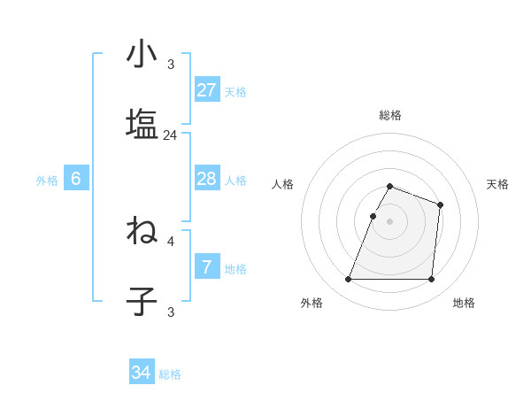 小塩 ね子さんを姓名の画数から五運を鑑定