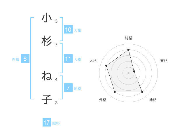 小杉 ね子さんを姓名の画数から五運を鑑定
