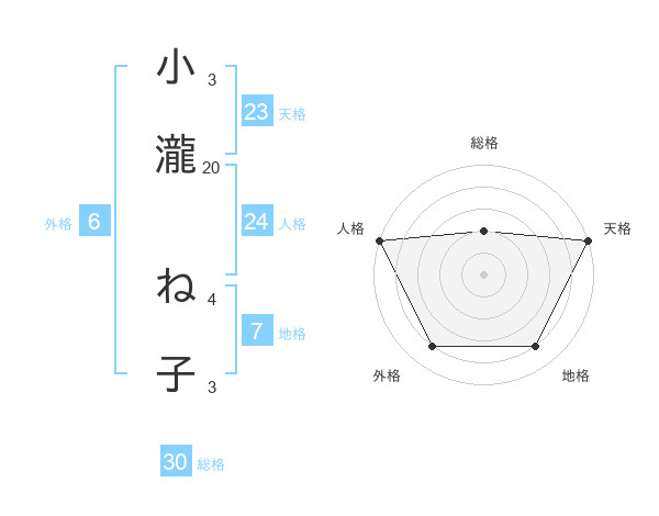 小瀧 ね子さんを姓名の画数から五運を鑑定